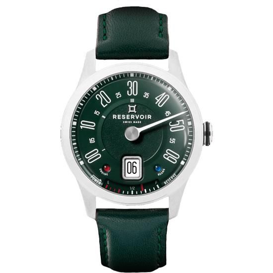 グリーンの文字盤にあしらわれた2つの宝石、ルビーとサファイアは、ヴィンテージ カウンターのライトインジケーターとフルヘッドライトを表現しています。